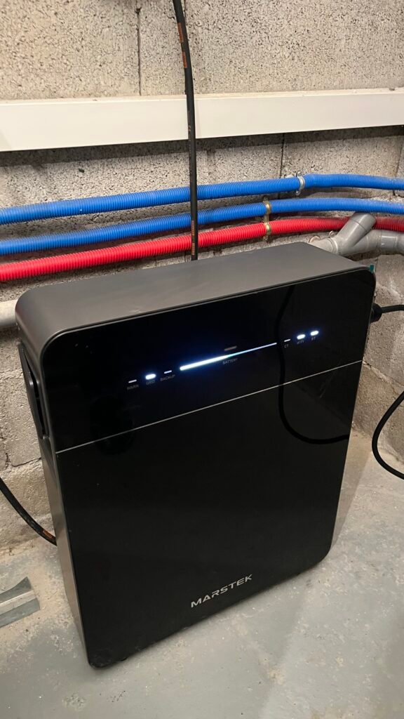 Le client étant déjà équipé de panneaux solaires avec Micro-Onduleur, il a choisi une solution économique par l’ajout d’une batterie AC de marque #MARSTEK (5k). Il sera possible plus tard d’ ajouter un complément de batterie.