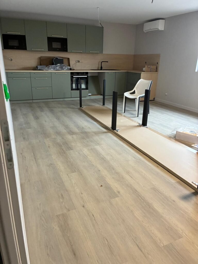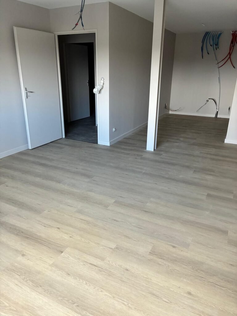 Le défi : Réaliser l’intégralité des 100 m² (préparation + pose + finitions).